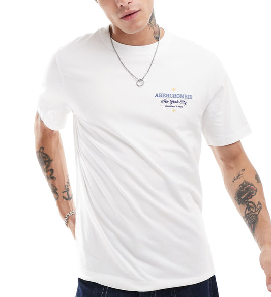 Abercrombie & Fitch tile inspired logo centre and back print classic fit t-shirt in white