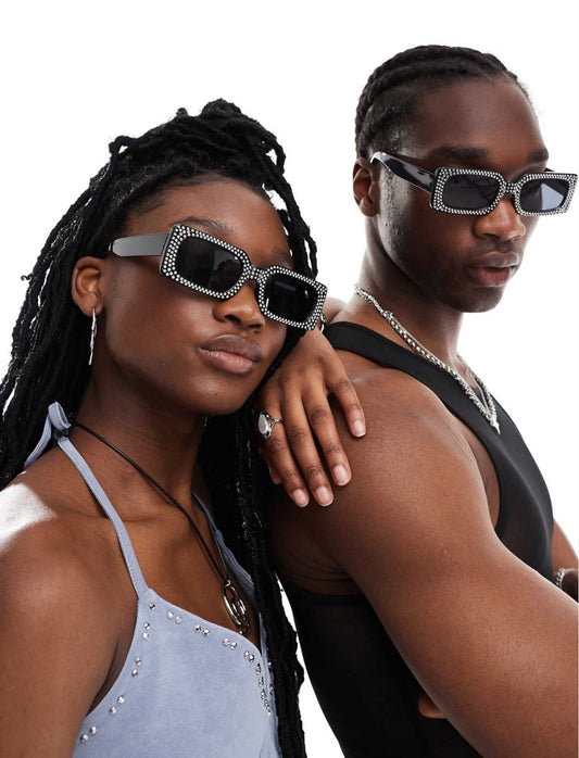 AJ Morgan embellished festival rectangle sunglasses in black - BLACK