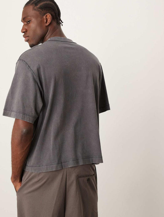 Abercrombie & Fitch National Parks Badlands print acid wash crop t-shirt in charcoal