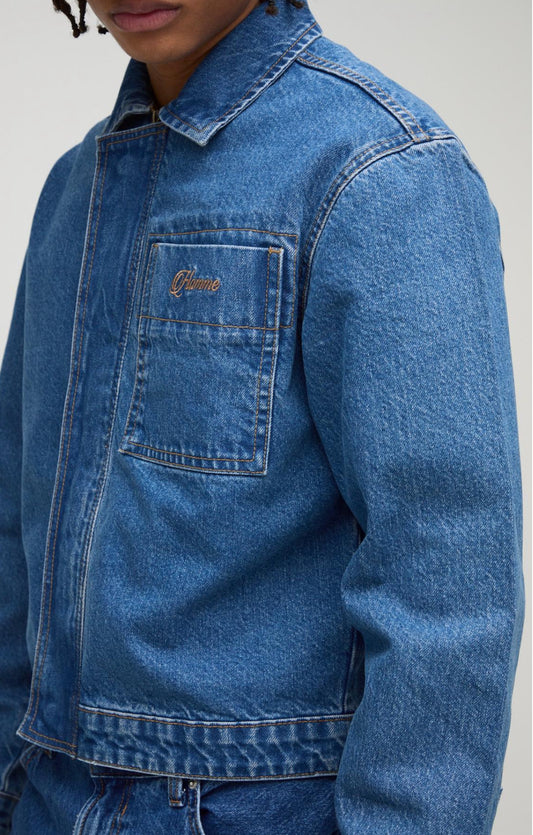 BoohooMAN Relaxed Fit Concealed Placket Embroidered Denim Jacket