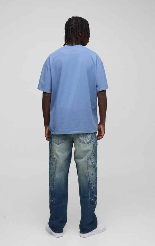 BoohooMAN Relaxed Fit Paisley Embroidered Jeans