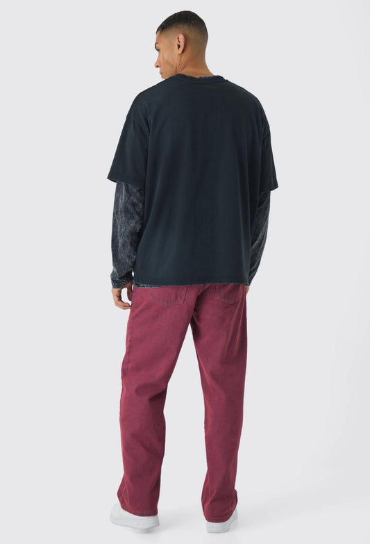 BoohooMAN Relaxed Rigid Double Waistband Denim Jeans