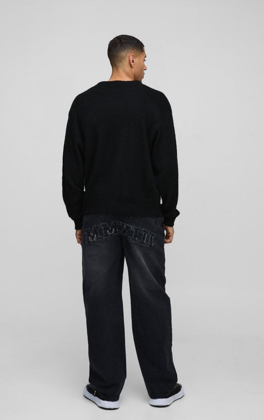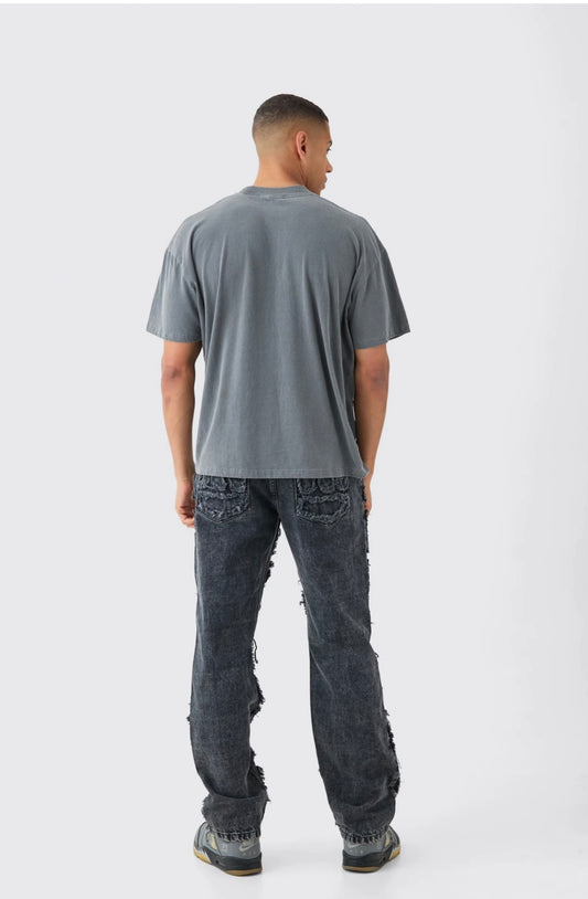 BOOHOOMAN RELAXED RIGID APPLIQUE RIPPED JEANS