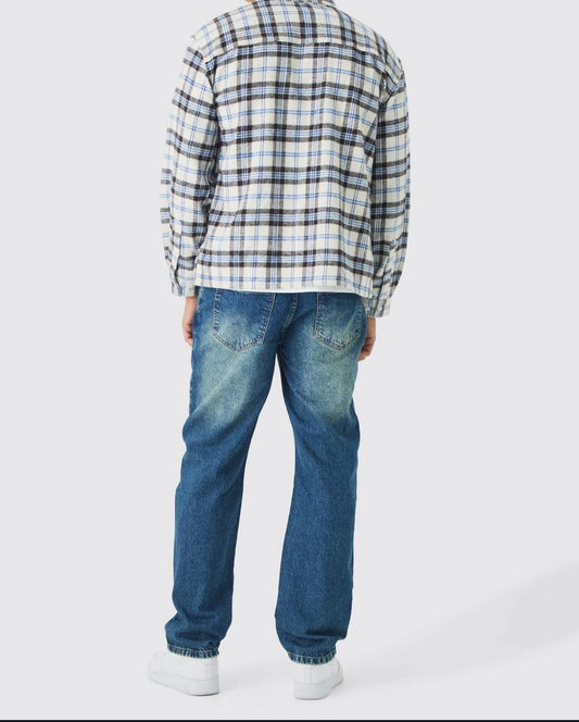 BoohooMan Relaxed Rigid Jean In Vintage Blue