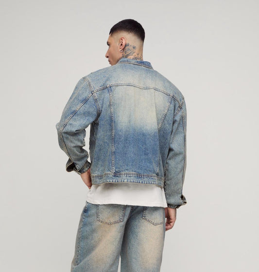 BoohooMAN Tall Stonewash Boxy Oversized Denim Jacket