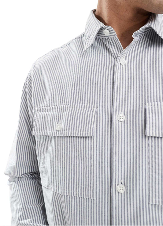 Jack & Jones oxford stripe overshirt in blue