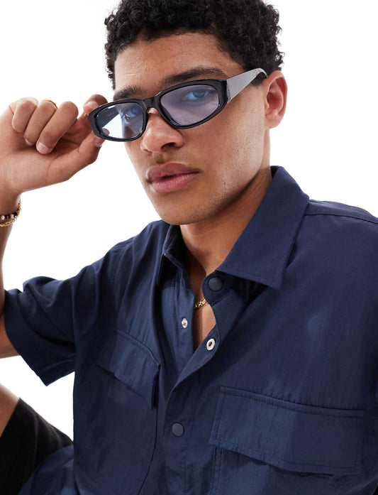 Pull&Bear angular sunglasses with blue lens in black