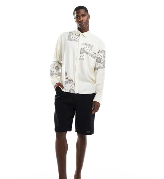 ONLY & SONS relaxed shirt with NYC prints in beige