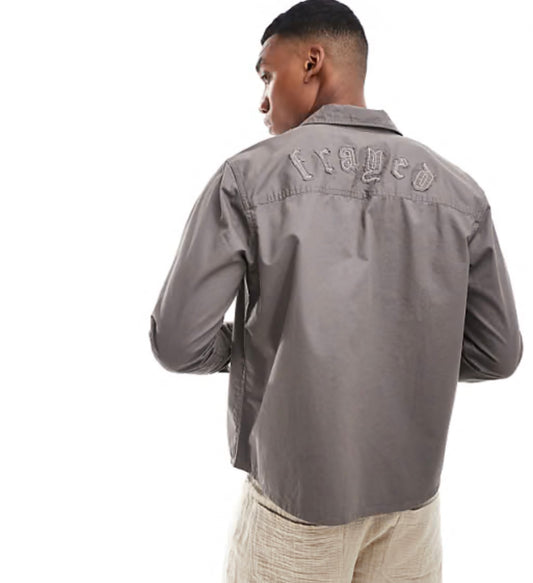 ONLY & SONS long sleeve shirt with frayed detail in charcoal