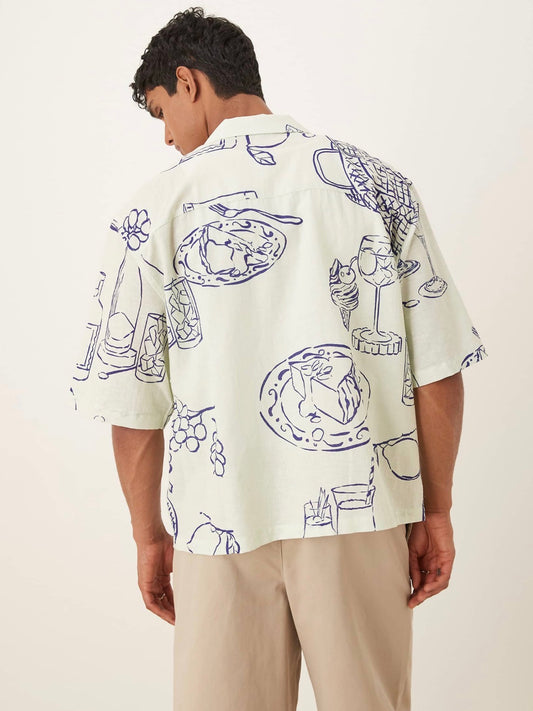 ASOS DESIGN boxy oversized revere shirt with picnic print in cream