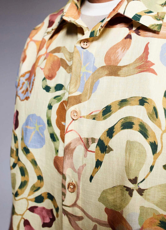 ASOS DESIGN boxy oversized linen mix shirt in floral blanket print