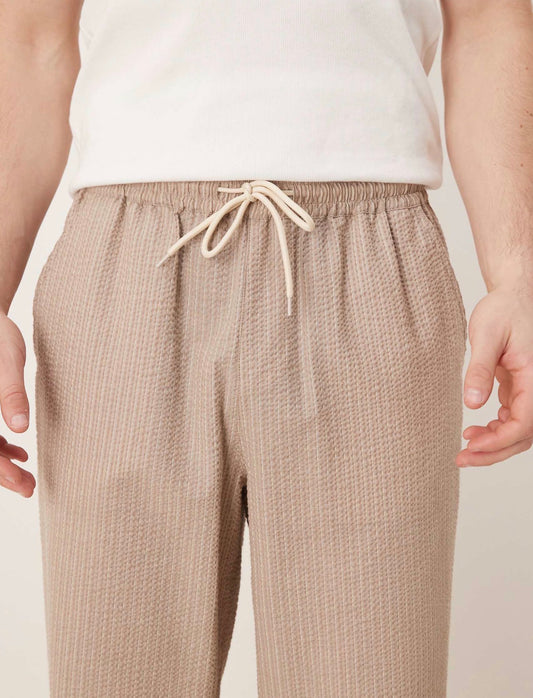 ASOS DESIGN straight fit pull on trouser in beige and white stripe