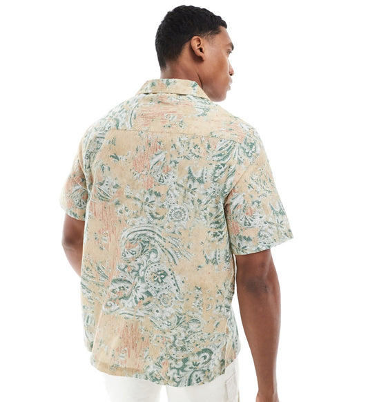 ASOS DESIGN relaxed revere shirt with geo print in neutral