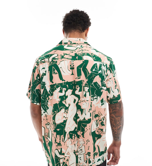 ASOS DESIGN relaxed revere shirt with jazz band print