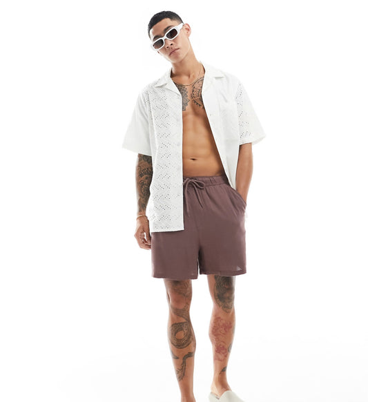 ASOS DESIGN slim pique short in off white