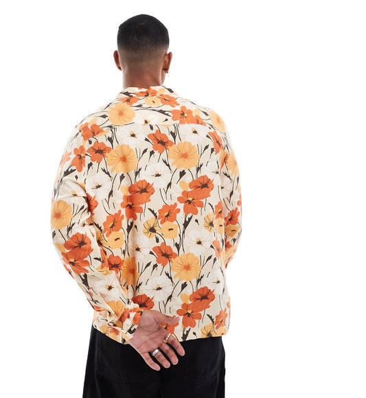 ASOS DESIGN relaxed revere shirt with retro floral print in orange