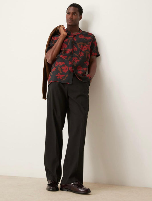 ASOS DESIGN relaxed revere shirt with floral print in black and red