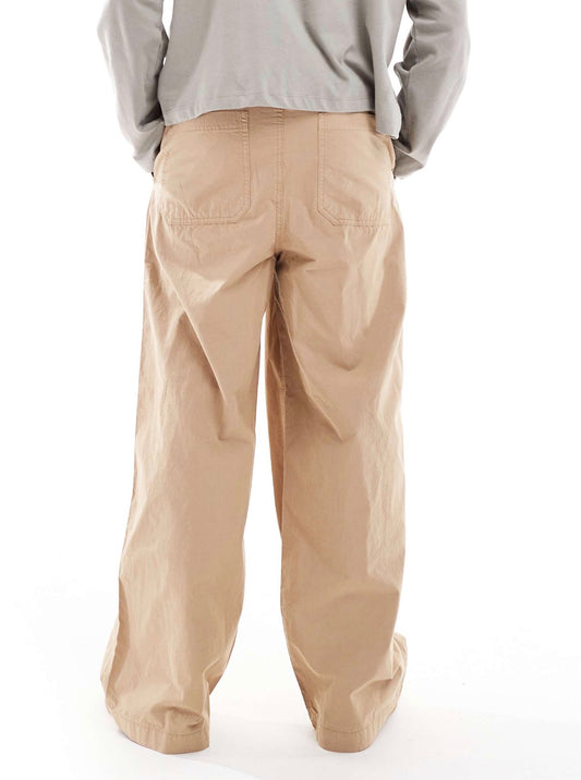 ASOS DESIGN super baggy pull on trousers in beige poplin