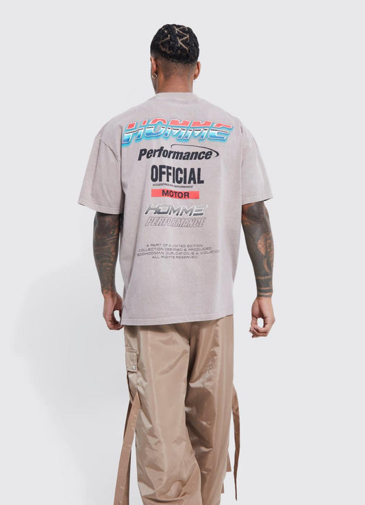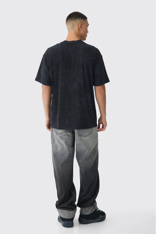 BoohooMAN Oversized Acid Wash Motor Sport T-Shirt
