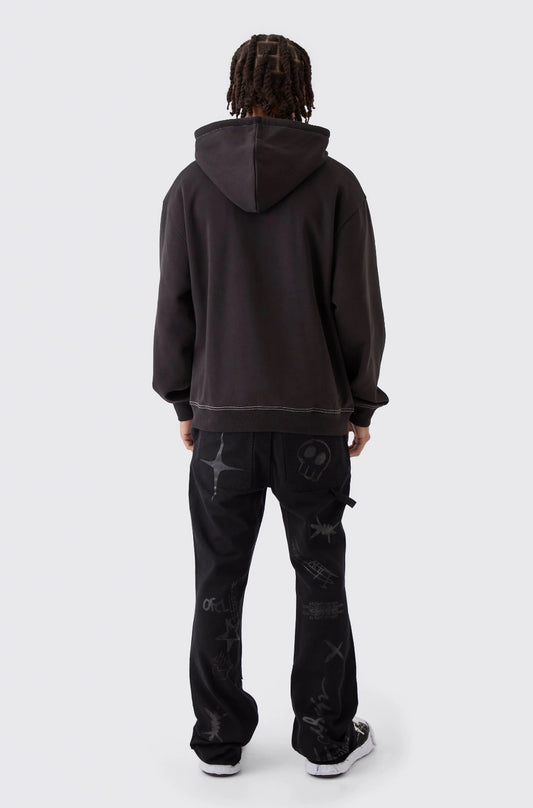 BoohooMan Fixed Waist Slim Flare Twill Laser Printed Carpenter Trousers
