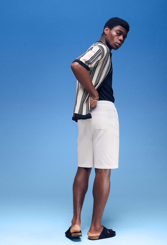 ASOS DESIGN longer length shorts with pleat detailing in ecru