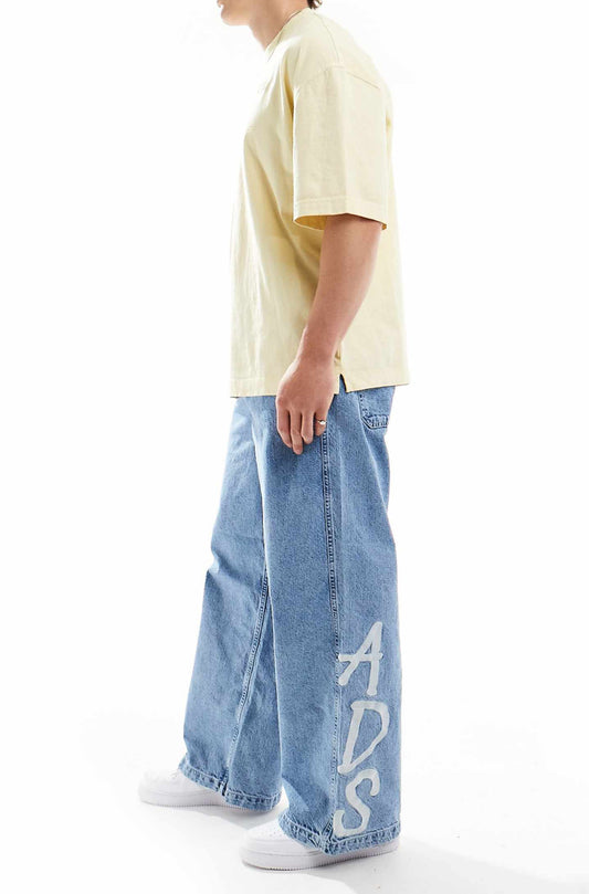 ASOS DESIGN super baggy jeans with ADS logo in mid wash blue