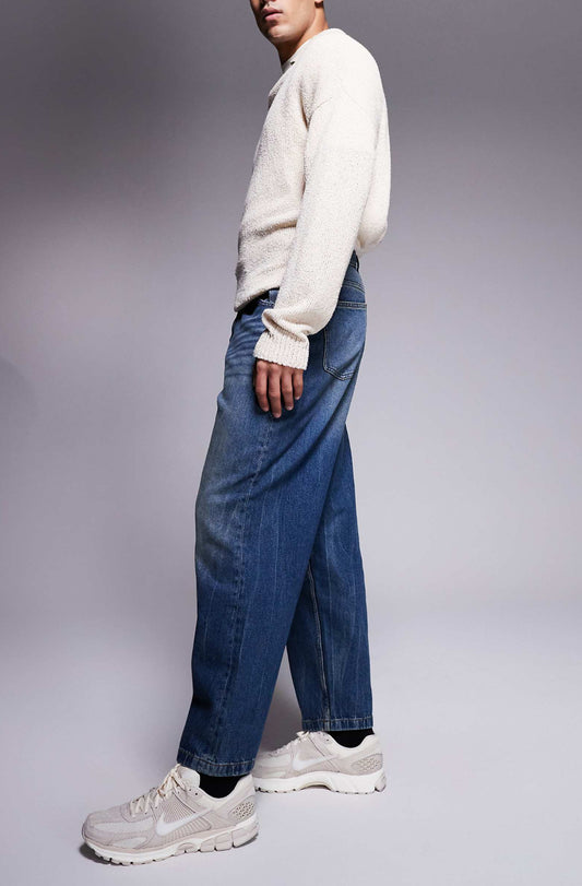 ASOS DESIGN balloon fit jeans with vintage tint in mid dark wash blue