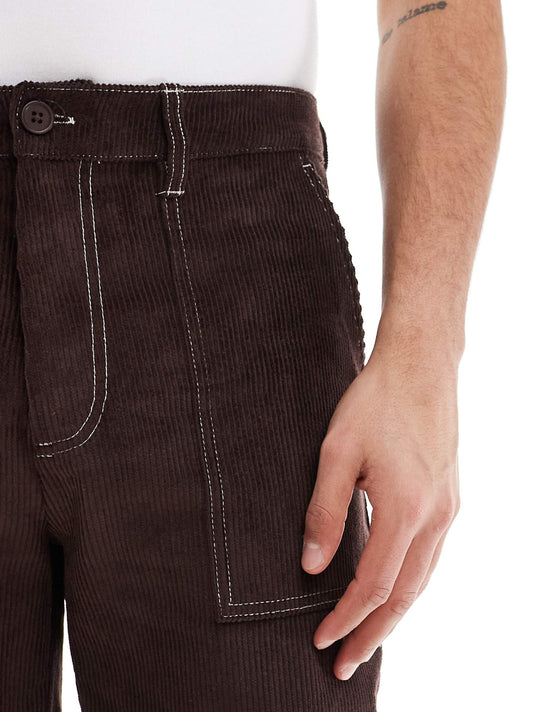 ASOS DESIGN straight leg cord trousers with contrast stitch in brown