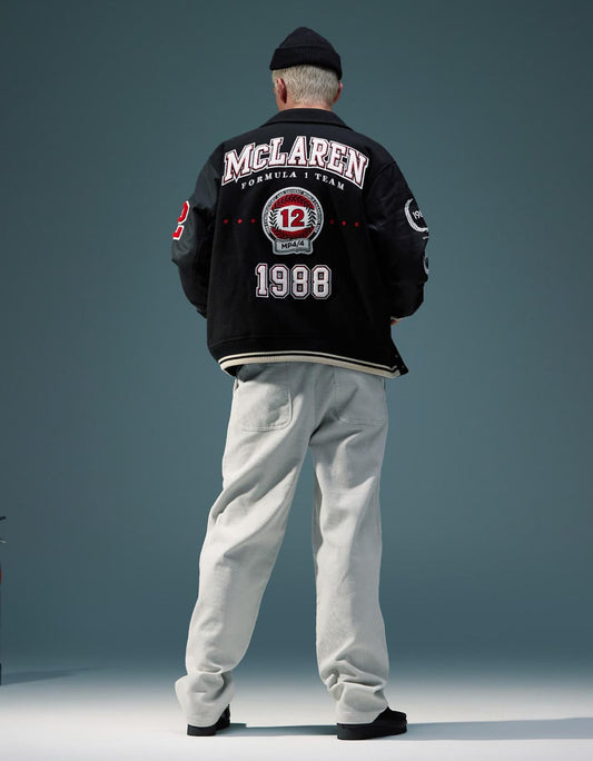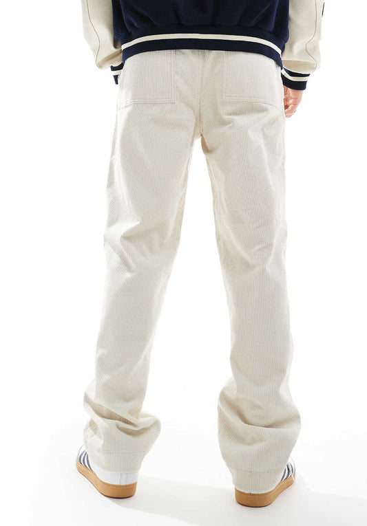 ASOS DESIGN baggy cord trousers with embroidered patch in stone