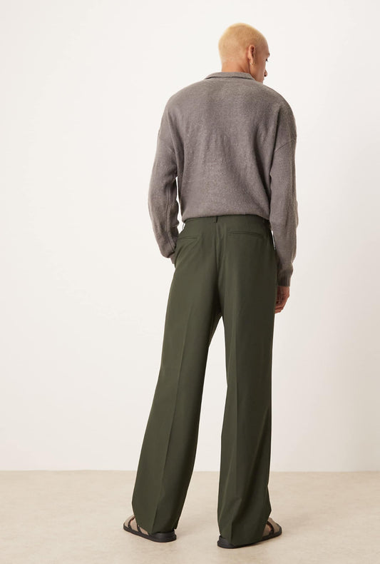 ASOS DESIGN smart wide leg trousers with double pleats in green