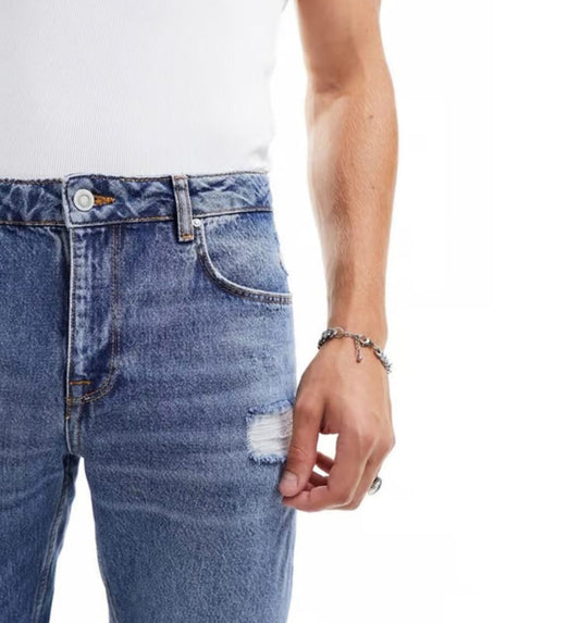 ASOS DESIGN slim jeans in vintage mid blue with rips