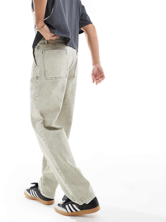 ASOS DESIGN baggy carpenter trousers with zip details in washed black