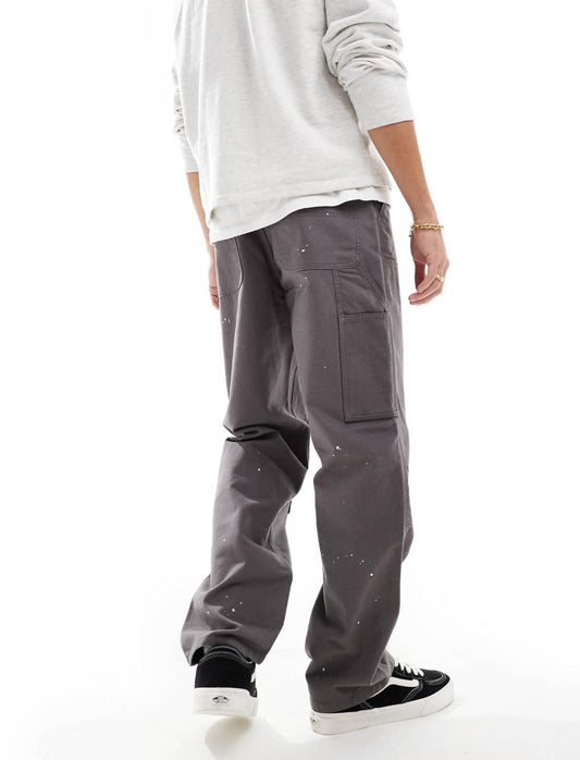 ASOS DESIGN carpenter trousers with paint splats in charcoal
