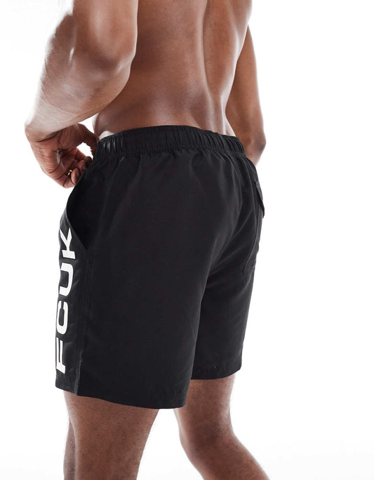 French Connection FCUK logo swim trunks in black and white