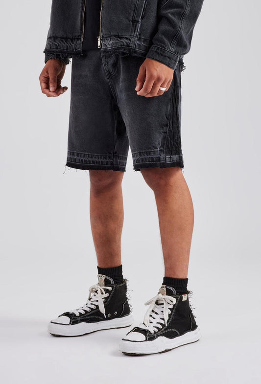 Cernucci Raw Edge Denim Short - Washed Black