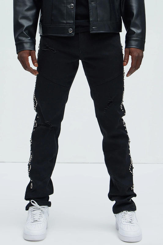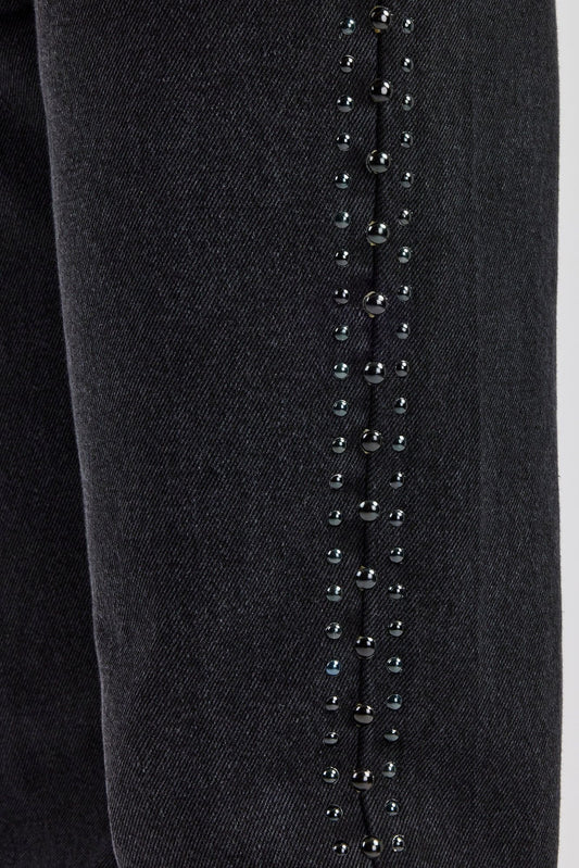 Cernucci Stacked Leg Studded Denim Jean