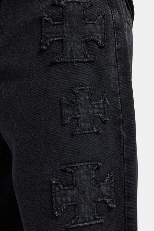 Cernucci Raw Edge Applique Motif Jean - Washed Black