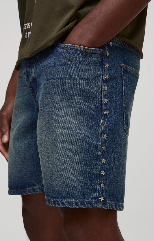 BoohooMAN Slim Fit Antique Blue Star Studded Denim Shorts