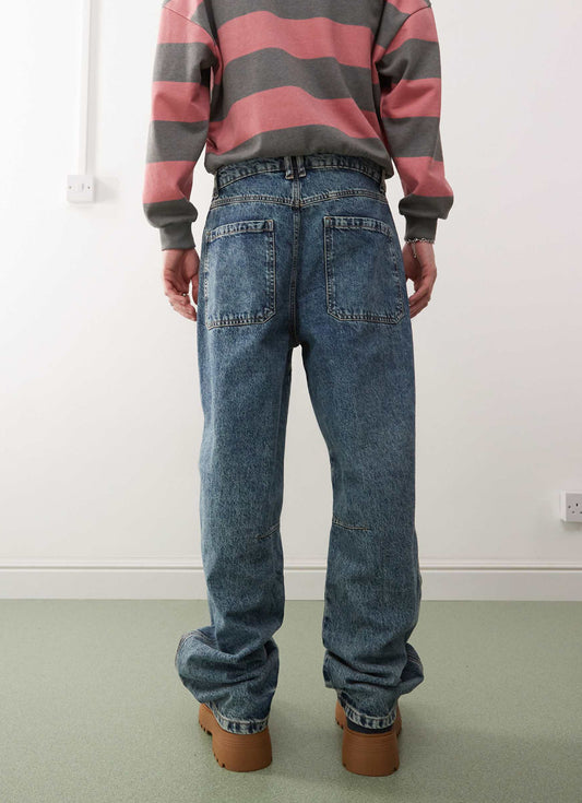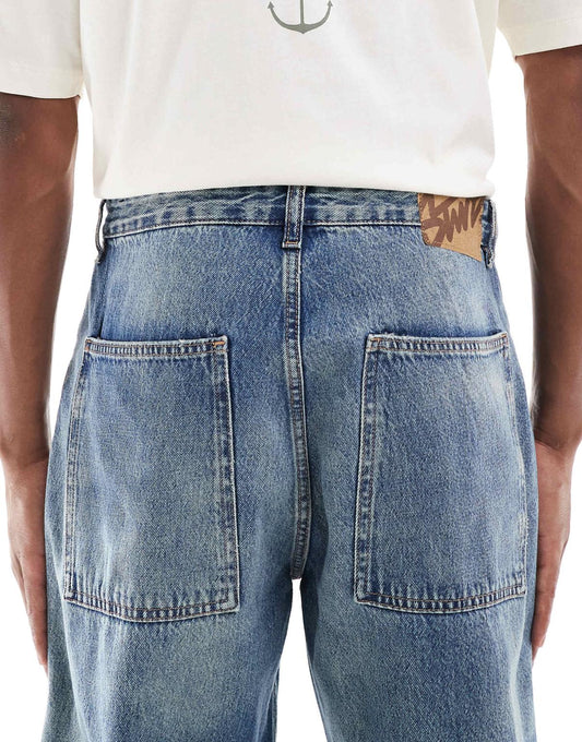 Reclaimed Vintage unisex loose fit motocross jean in mid blue wash