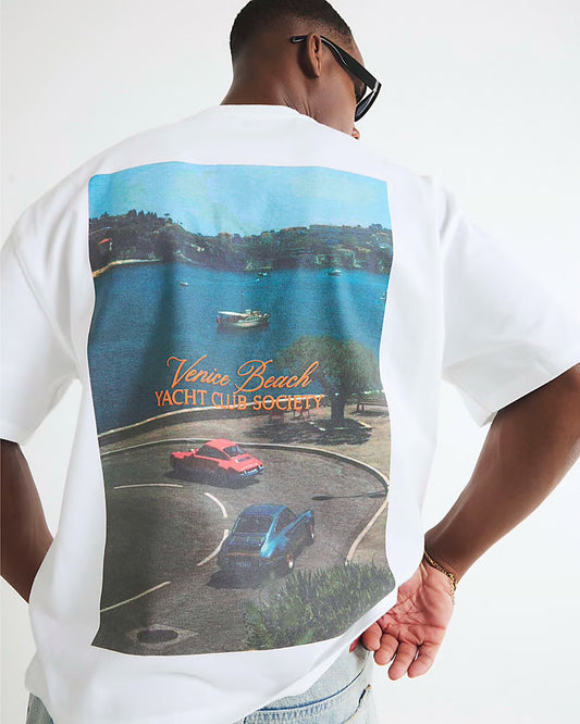 River Island Mens T-Shirt White Oversized Fit Yacht Club Car