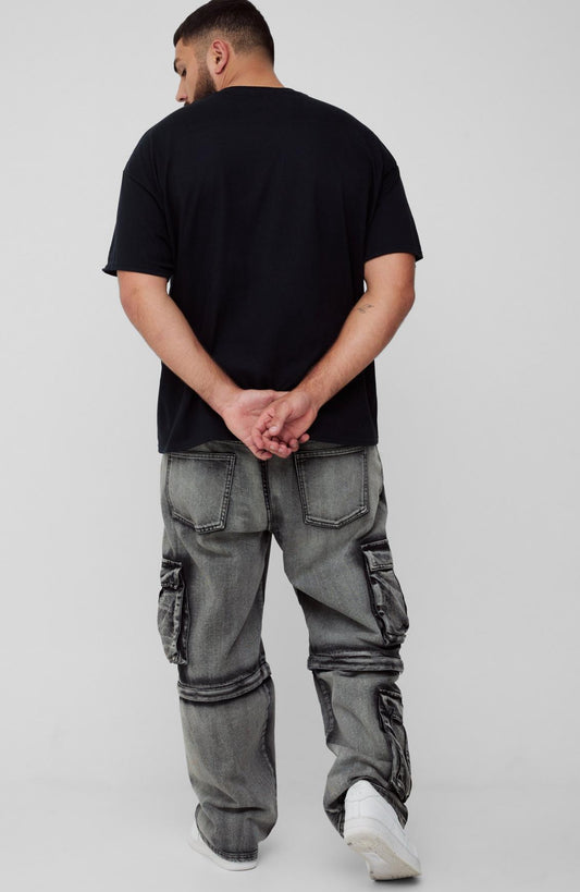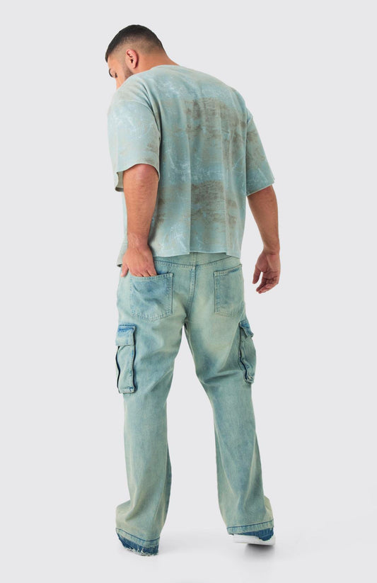 BoohooMan Plus Oversized Acid Washed Moto Print T-Shirt