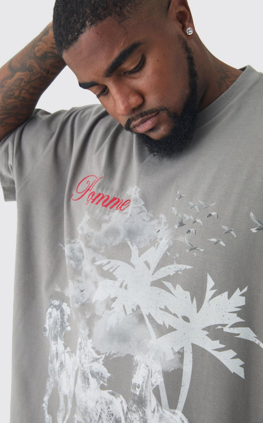 BoohooMAN Plus Oversized Boxy Western Horse T-Shirt