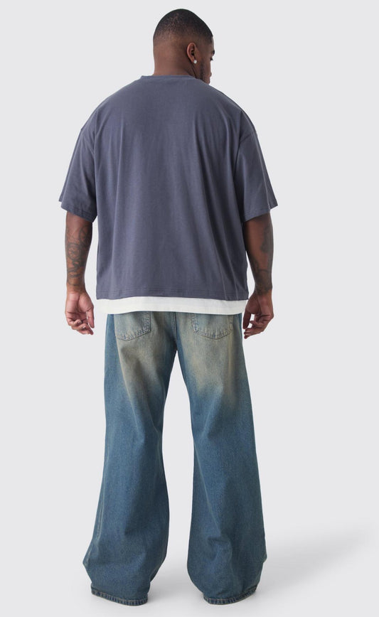 BoohooMAN Plus Oversized Boxy Outlaws Faux Layer T-Shirt