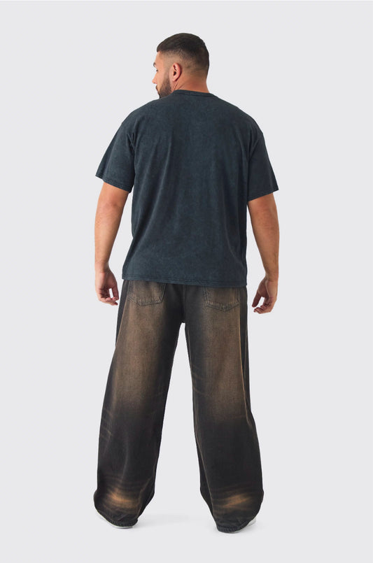BoohooMAN PLUS ACID WASH COMPACT RIB BOXY OVERSIZED T-SHIRT