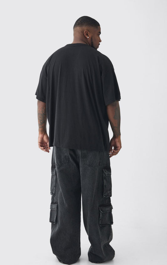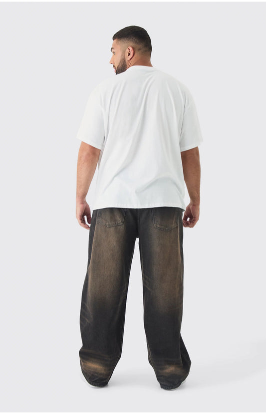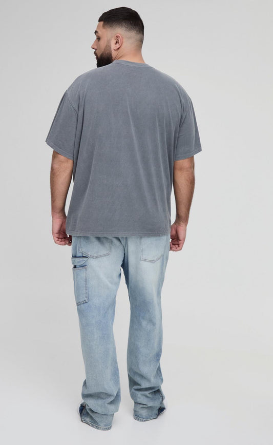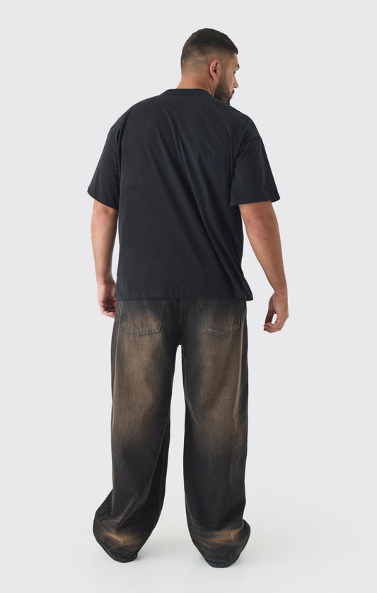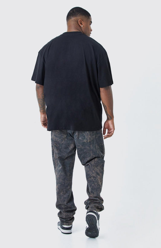 BoohooMan Plus Oversized Extended Neck Spray Wash T-shirt