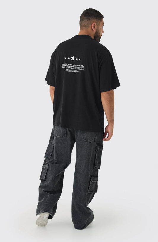BoohooMan Plus Oversized Pour Homme Moto Print T-Shirt
