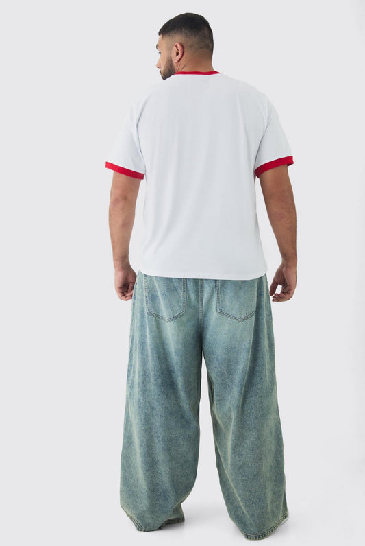 BoohooMAN Plus Western Graphic Ringer T-Shirt