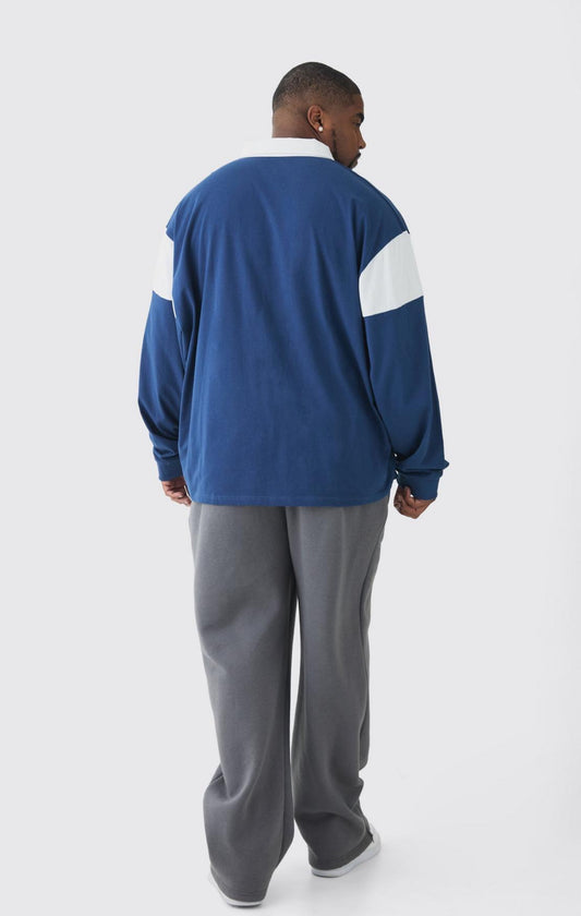 BoohooMAN Plus Oversized Worldwide Applique Rugby Polo
