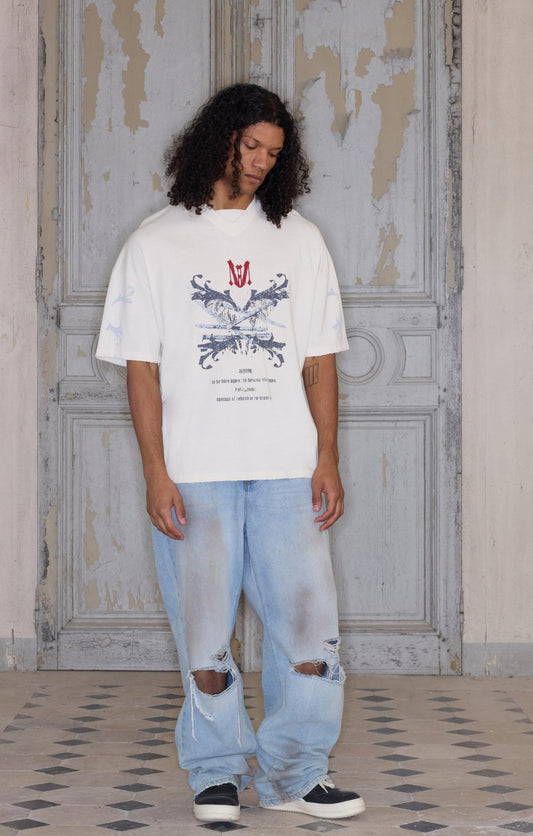 BoohooMAN REGULAR FIT PREMIUM SKELETON GRAPHIC DISTRESSED T-SHIRT IN ECRU