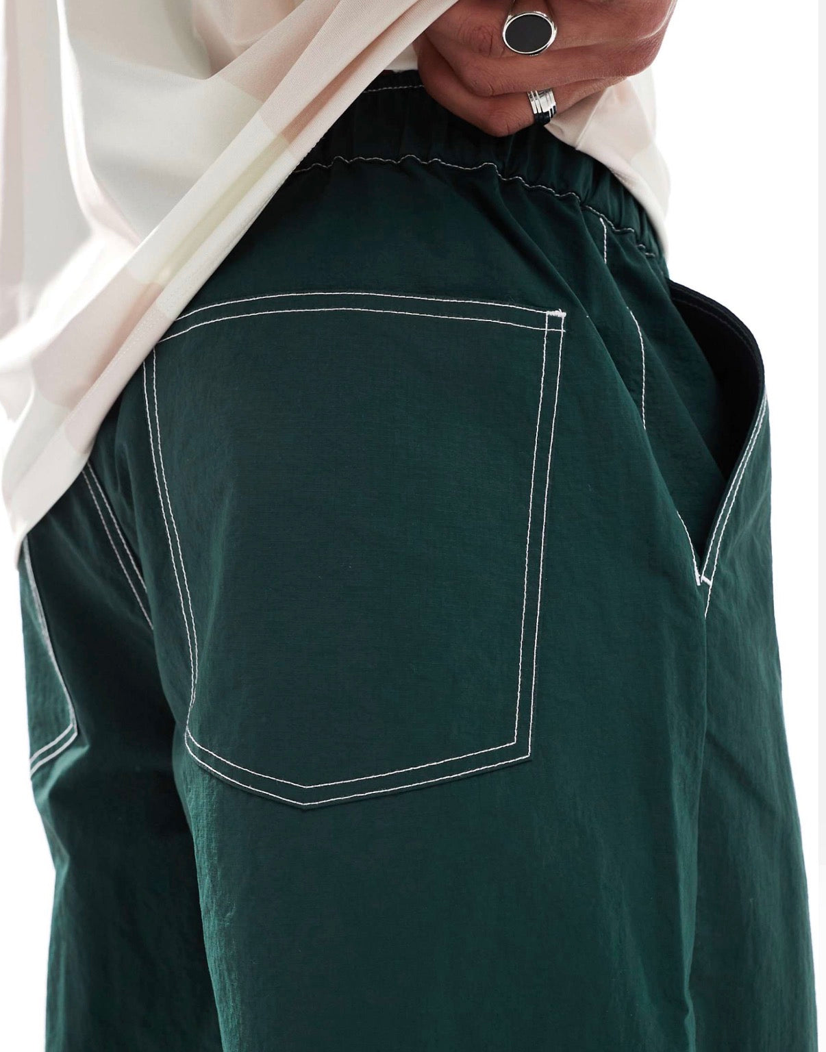 ASOS DESIGN baggy trouser in green nylon with contrast stitch